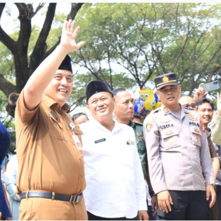 Sekretaris Daerah Dedy Supriyadi bersama dengan Kepala Kantor Kementerian Agama Kabupaten Bekasi, juga unsur dari Forkopimda melepas 440 calon jemaah haji Kabupaten Bekasi 1445 Hijriah.